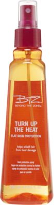 Protect your hair from the potential drying and damage from heat styling appliances. Beyond The Zone Turn Up The Heat thermal spray provides protection prior to heat styling.